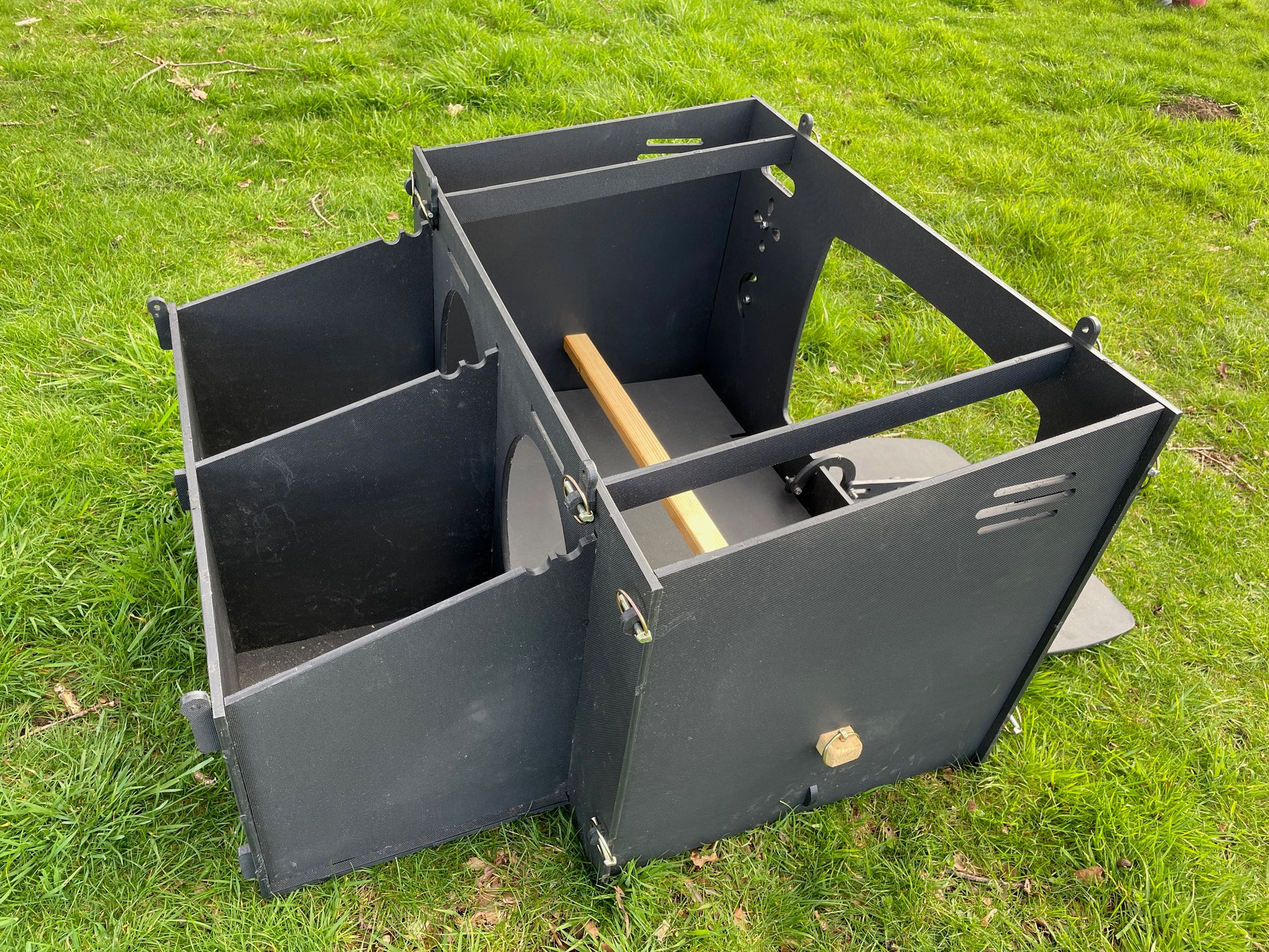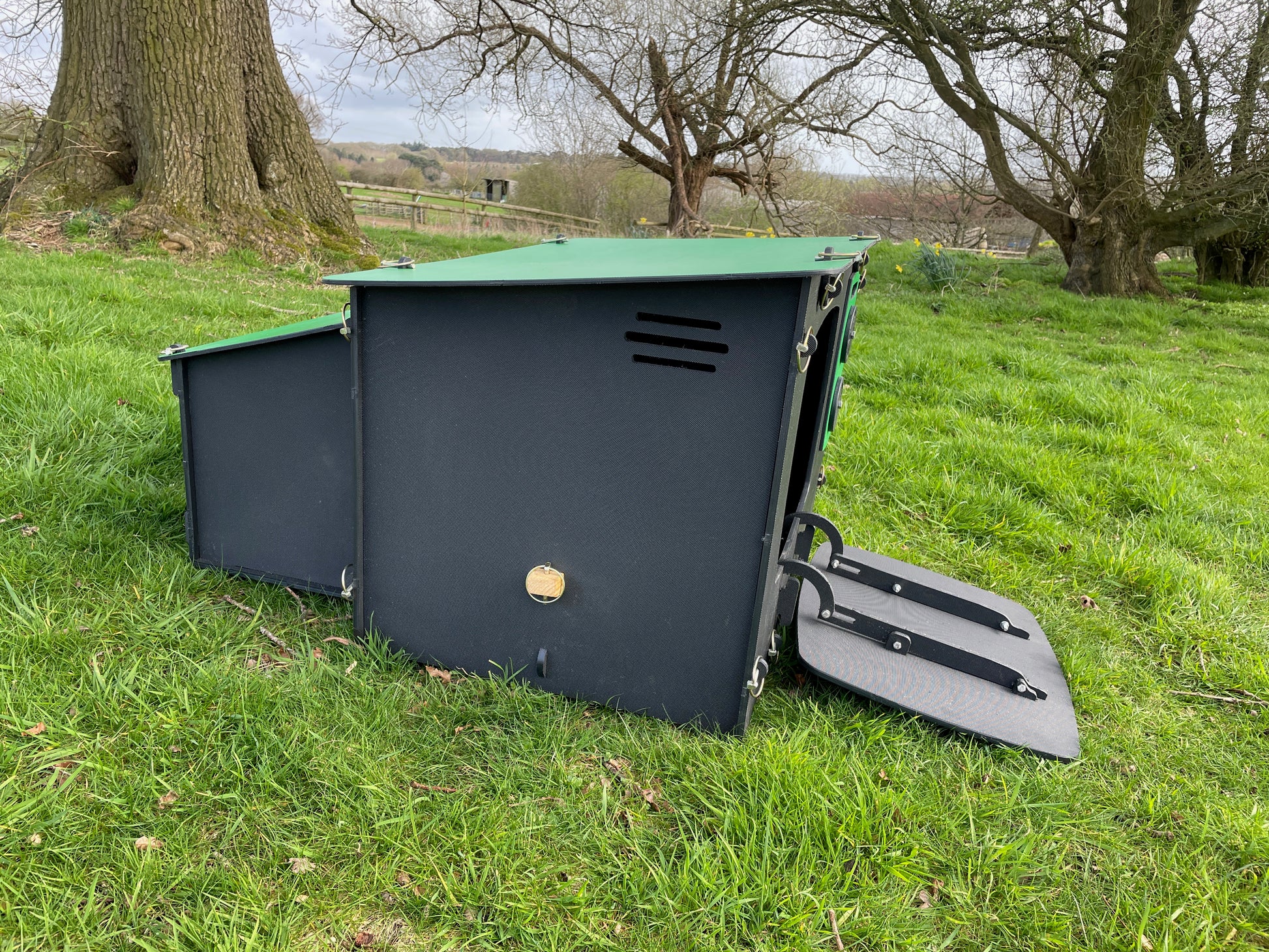 The robust front hatch lifts up and folds down to open. It then locks back into place to close. The full roof can easily be removed by just unclipping 4 clips to aid access and cleaning.