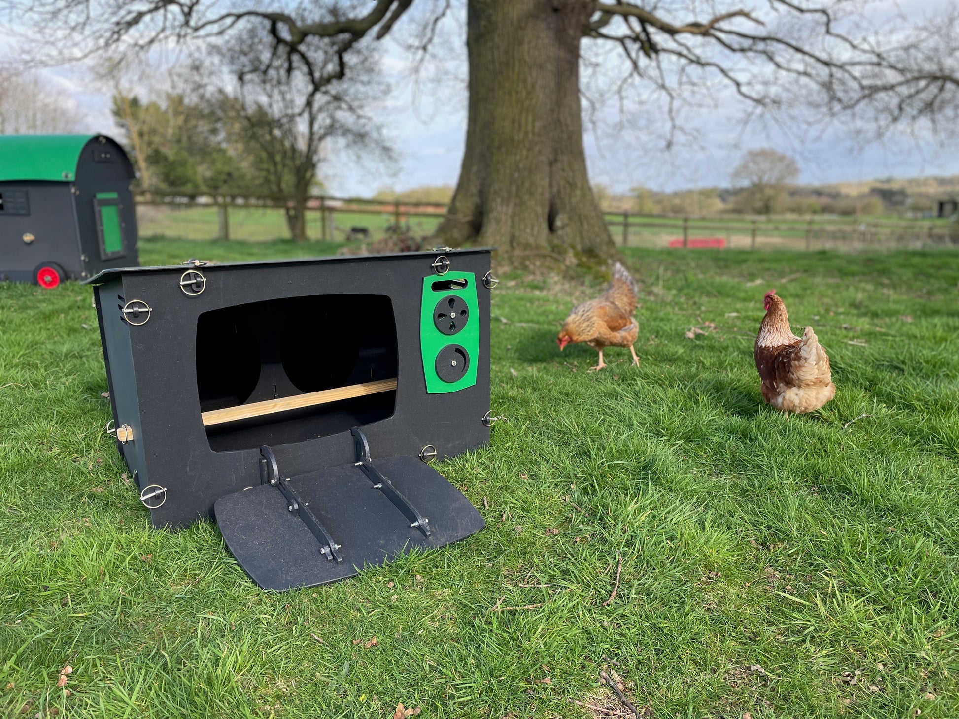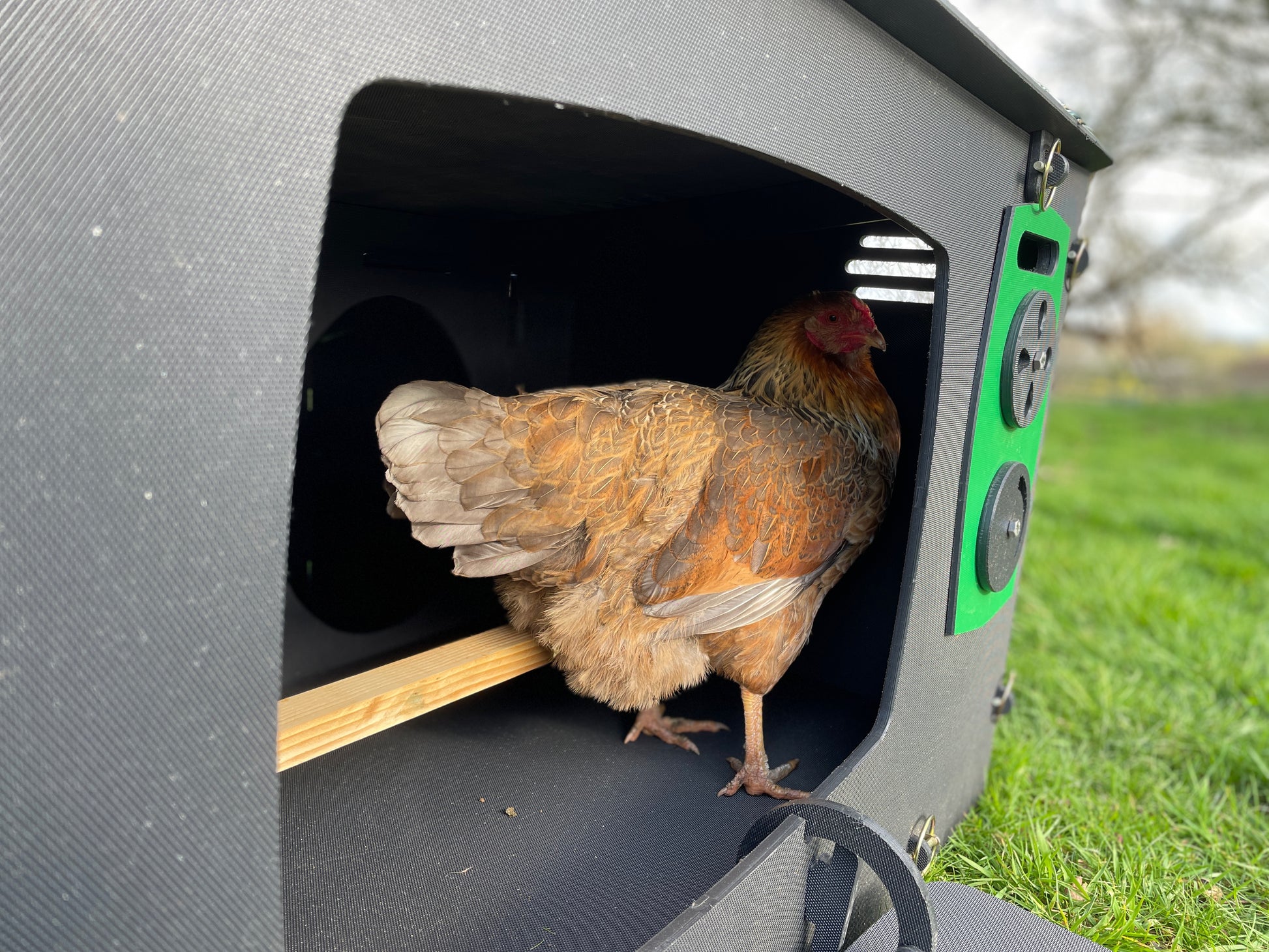 It's easy to collect eggs from the two nest boxes on the back. Simply unclip two pins and remove the roof.